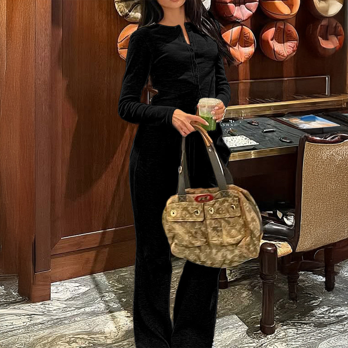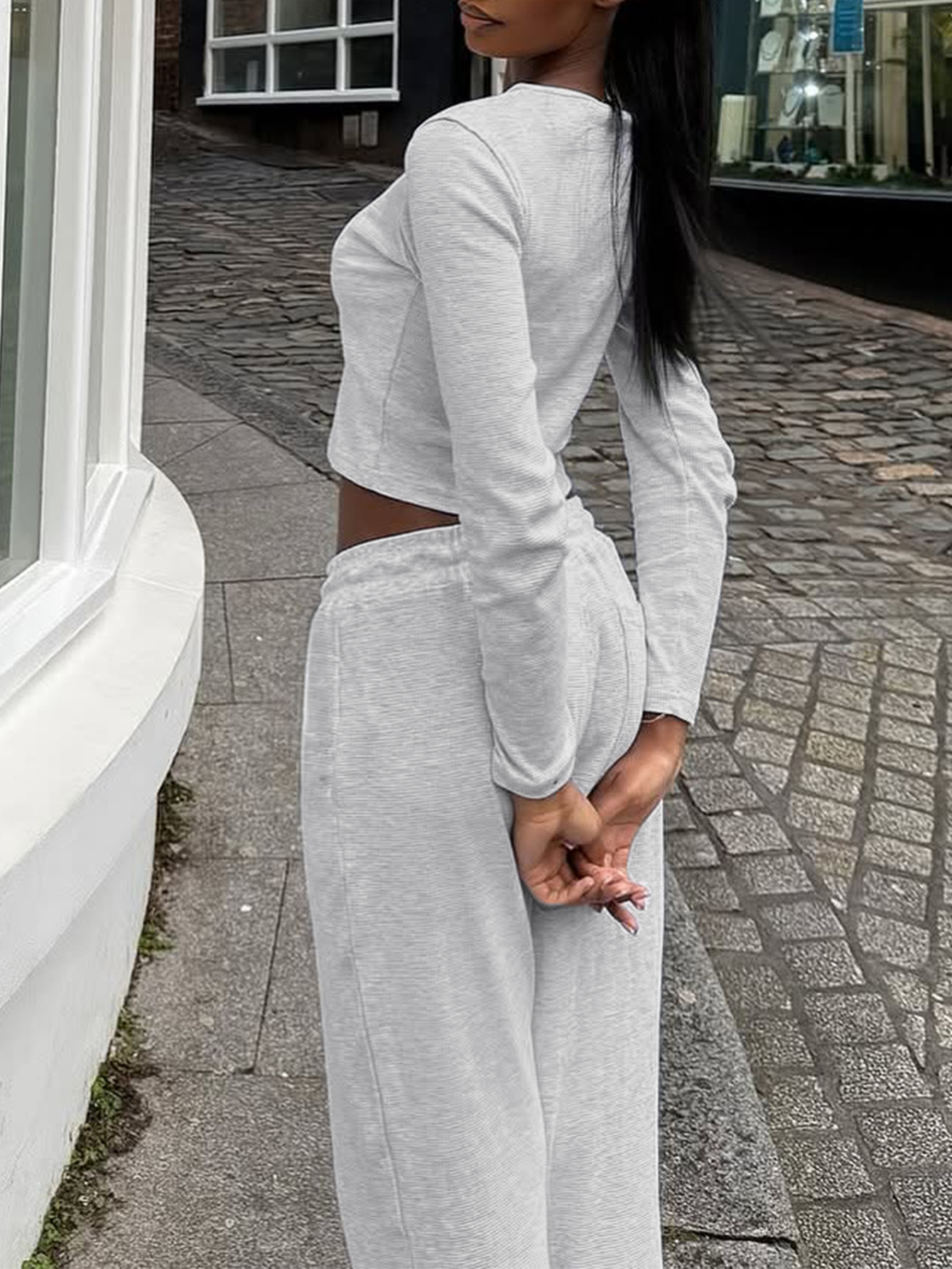 Affirmez votre style avec cet ensemble au design épuré, pensé pour mettre en valeur la silhouette avec subtilité et caractère. Sa coupe ajustée apporte une allure moderne et soignée, idéale pour un look tendance au quotidien.
