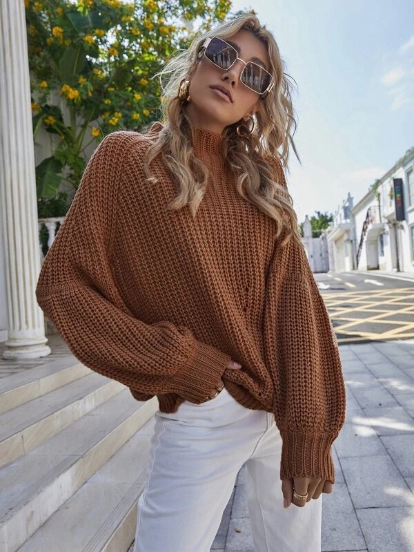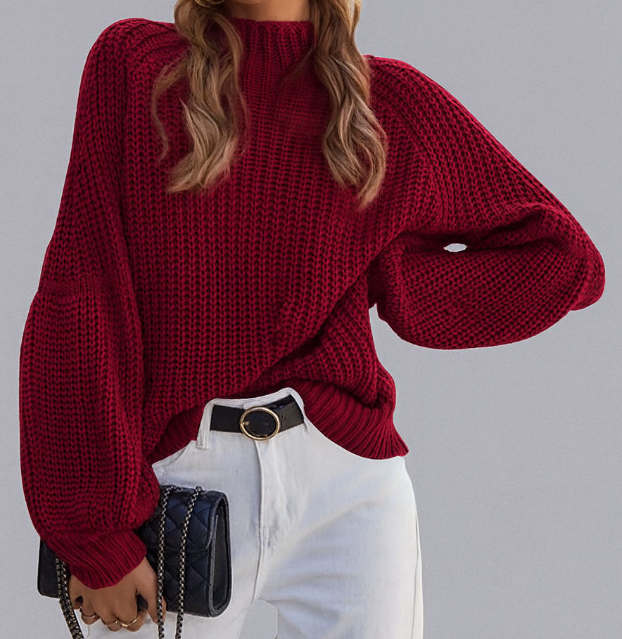 Ce pull généreusement tricoté combine style moderne et confort absolu. Sa texture épaisse et son col légèrement montant apportent une allure chic tout en restant décontractée, idéale pour celles qui aiment un look à la fois tendance et cosy.
